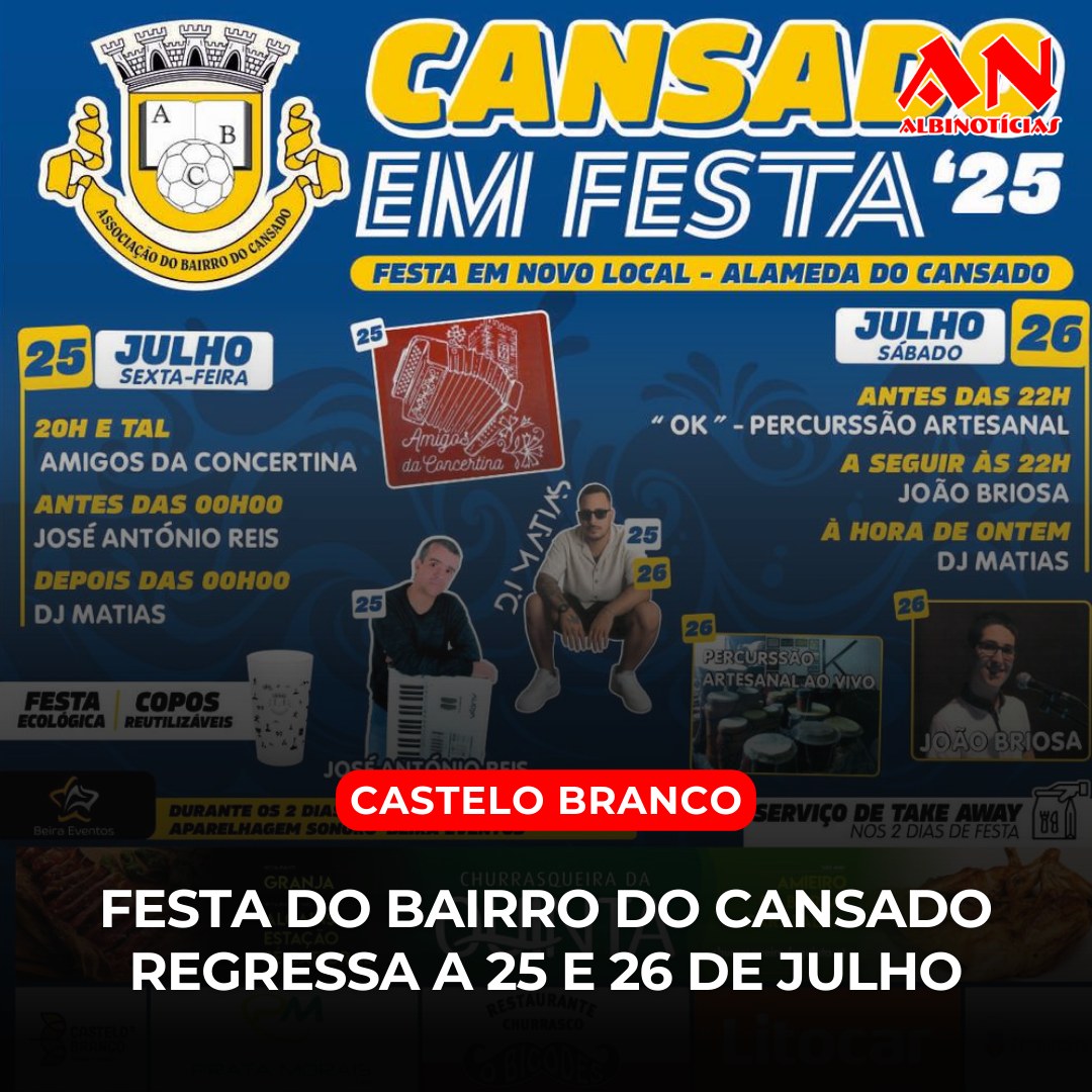 A Festa do Bairro do Cansado está de regresso nos dias 25 e 26 de julho, sexta-feira e sábado, este ano com uma novidade: o evento muda-se para a Alameda do Cansado, onde decorrerá toda a programação.