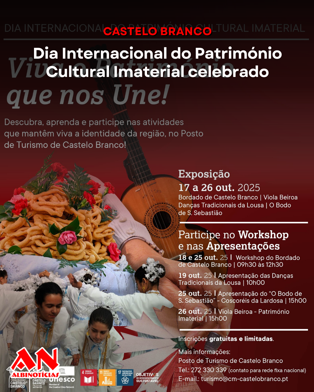 Castelo Branco, comemorou no dia 17 de outubro, o Dia Internacional do Património Cultural Imaterial e o Posto de Turismo, com um conjunto de iniciativas dedicadas às tradições e aos saberes da nossa região: