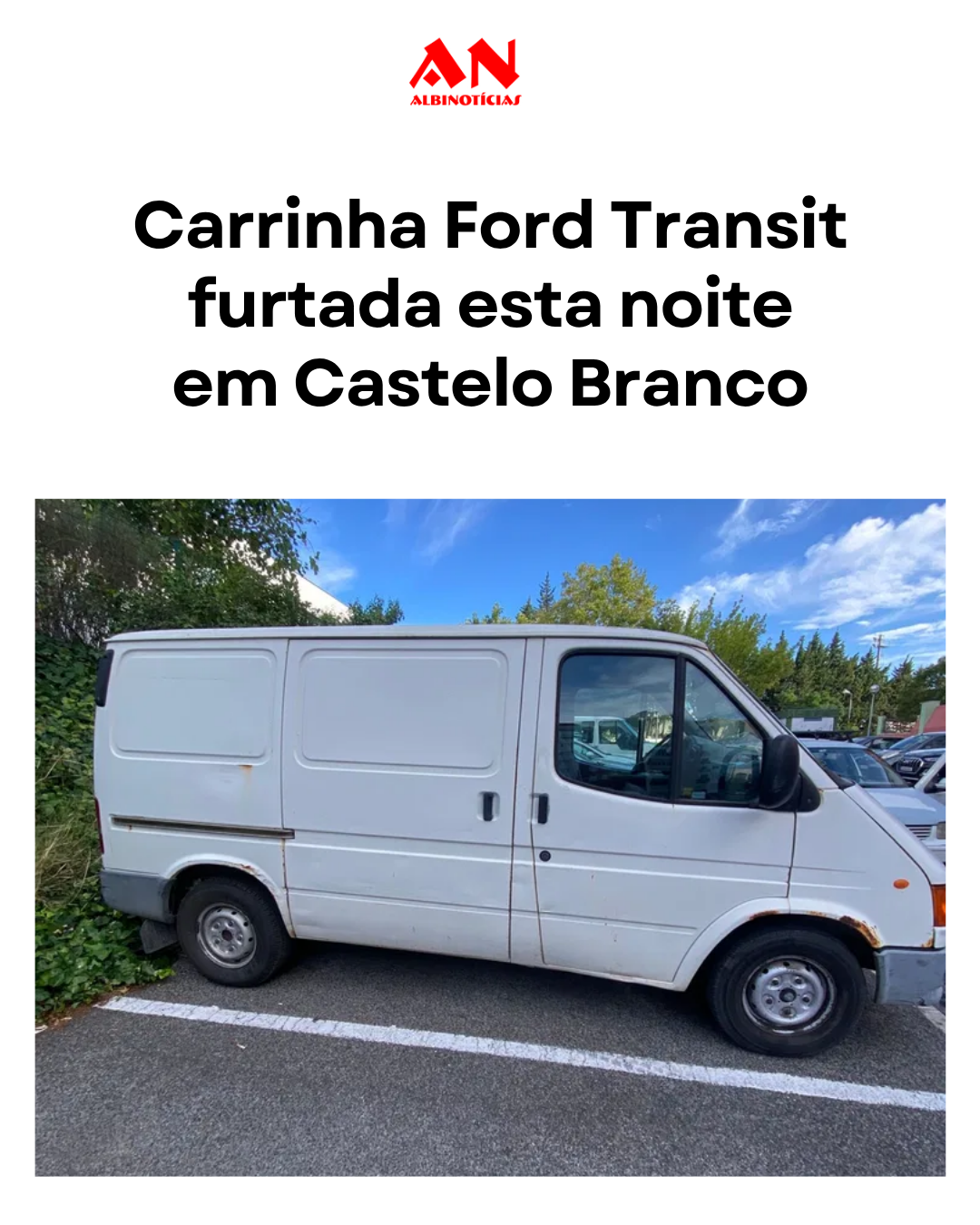 Uma viatura Ford Transit, com a matrícula UF-61-37 foi furtada esta noite em Castelo Branco. No seu interior contém um pequeno colchão, cadeira de criança e alguns documentos, revela Susana Marques, num anúncio publicado na rede social Facebook.