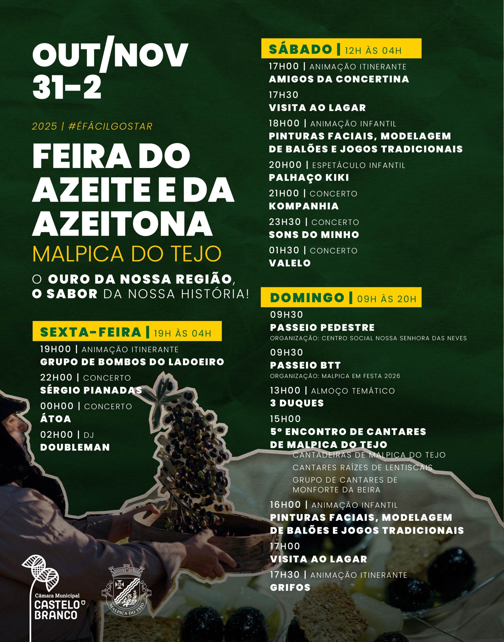 RegiãoFeira do Azeite e da Azeitona anima Malpica do Tejo este fim-de-semana...AlbiNotícias28 de Outubro, 2025 Read More